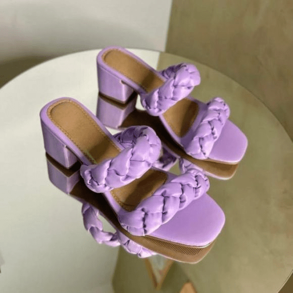 Tamanco Salto Bloco Trançado Lilás